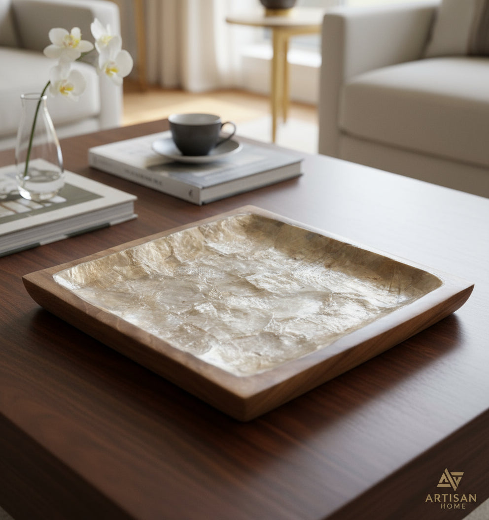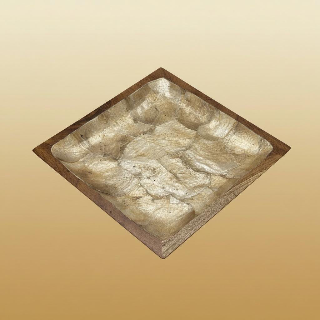 Handcrafted from radiant mother of pearl and warm, polished hardwood, the Aurea Valet embodies timeless elegance in its purest form. Designed to hold your most cherished essentials—jewelry, keys, or simple moments of stillness—it captures the art of refined living.